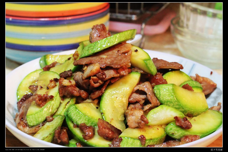 每天都是喝粥的,喜欢喝老米粥,很清爽,这么炎热的夏天,最好不过了。当然要想着法的做搭配的菜咯,这道菜不错哦,西葫芦好甜脆,肉片够香,很下粥哦。