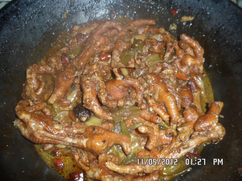对鸡爪的印象还停留在老班长老唐那,记得7 8年前看他处理过一次鸡爪,菜知道原来鸡爪外面有一层皮,说实话,从小到大,只吃过一次鸡爪,还是去年进中国货里有,跟着吃几口,感觉很诡异,哈哈,害怕那玩意,我妈也不喜欢那个,所以没机会吃。 这次自己处理下,差点疯了,害怕那手感,戴手套拔半天,发现确实不如收拔合适,痛苦ing,后来百度,拿水烫了下,再拔,拔了一个多小时,腰都断了,水都泡白了,娘来啊。 用糖醋口味,但是加了点泡椒的水和小泡椒,味道足够辣也。算成功了。