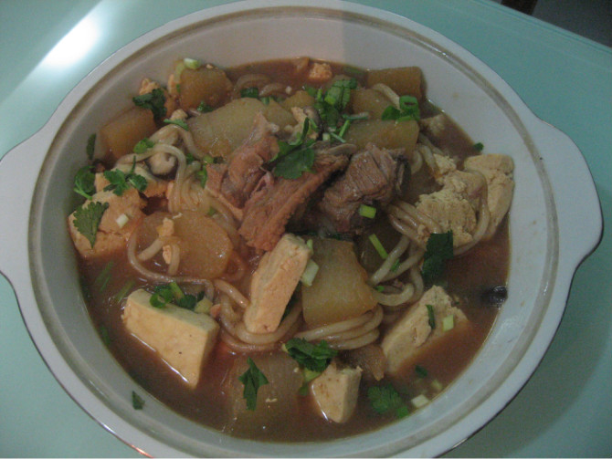 土豆粉条(适量) / 冬瓜,排骨(适量) / 鲜香菇,豆腐(适量)