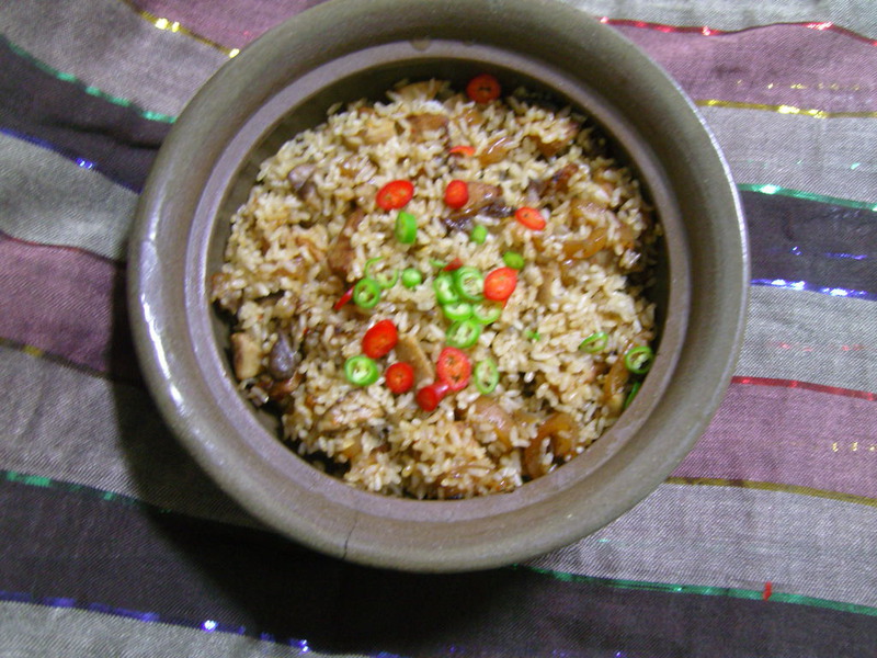 天一热,人就不想动,食欲也不太好,所以我把饭菜一起做。一,是省事;二呢,这个 菜用了点猪肥膘,猪肉的油香渗进饭里,加杂着酱油独有的香味,再带点淡淡的辣味……赤日炎炎,一样食指大动,口水直流,好好吃啊!