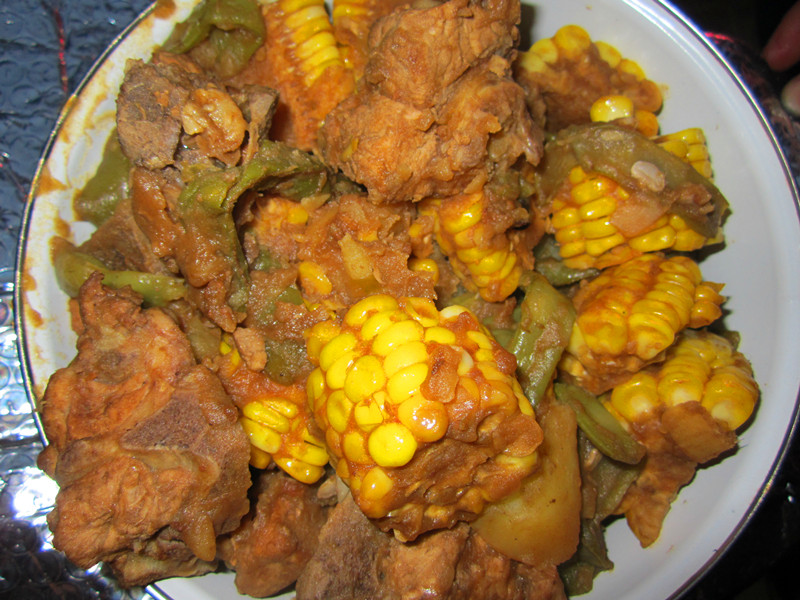 及以下步骤:放入排骨小火翻炒,炒至颜色有点变金黄 下入土豆,玉米,豆角翻炒 放入两勺豆瓣酱 将豆瓣酱炒匀,整个过程一直用小火,因为豆瓣酱非常容易胡 炒匀后加入和菜齐平的开水,大火烧开后转小火慢炖 炖至汤汁差不多收干放少许糖调味,如果觉得淡可以加一些盐,翻炒均匀后就可以出锅了 放入两勺豆瓣酱 将豆瓣酱炒匀,整个过程一直用小火,因为豆瓣酱非常容易胡 炒匀后加入和菜齐平的开水,大火烧开后转小火慢炖 炖至汤汁差不多收干放少许糖调味,如果觉得淡可以加一些盐,翻炒均匀后就可以出锅了