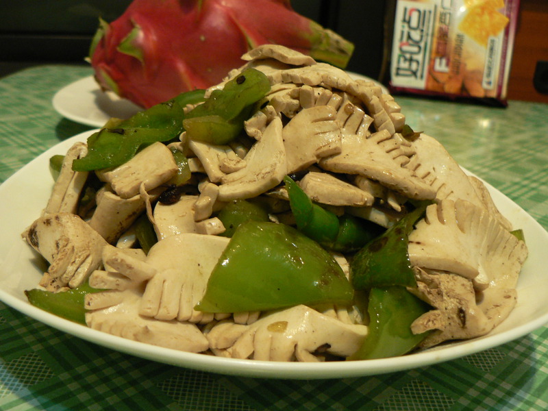 盐(适量) / 味精(适量) / 葱(适量) / 姜(适量) / 酱油(适量) / 生抽(适量) / 黑胡椒粉(适量) / 干红椒(1个) / 柿子椒(3个)