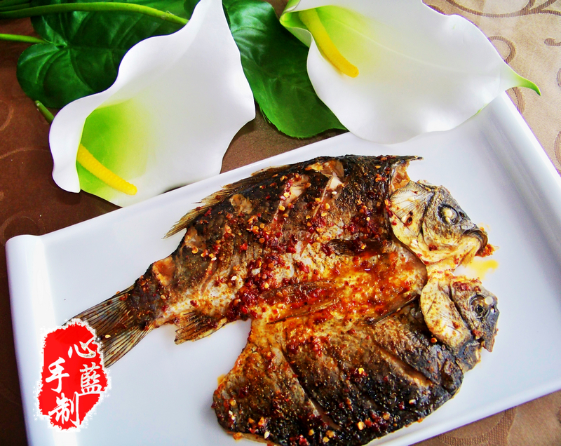 及以下步骤:1.钓的鲫鱼清水养24小时,吐净泥沙味 2.鲫鱼去鳞抠腮,从背部杀开,去内脏刮尽黑膜,鱼身剜浅花刀,用刀将鲫鱼的脊骨轻轻斩断 1.钓的鲫鱼清水养24小时,吐净泥沙味 2.鲫鱼去鳞抠腮,从背部杀开,去内脏刮尽黑膜,鱼身剜浅花刀,用刀将鲫鱼的脊骨轻轻斩断 1.钓的鲫鱼清水养24小时,吐净泥沙味 2.鲫鱼去鳞抠腮,从背部杀开,去内脏刮尽黑膜,鱼身剜浅花刀,用刀将鲫鱼的脊骨轻轻斩断 3.盐和孜然粉分三份,一份用于腌制,将鱼置于碗中,鱼身抹盐,撒孜然粉,撒广东米酒,加姜片,入冰箱腌制24小时 4.将碗内腌汁倒去,鱼身内侧刷辣椒红油,撒剩余1/3盐和孜然粉 5.烤盘垫锡纸,将鱼移入烤盘,鱼身下垫姜片,鱼身外侧刷辣椒红油,撒剩余1/3盐和孜然粉 6.烤箱预热180度,将鱼入烤箱烤25分钟即可