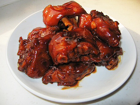 今天的猪蹄是用电压力锅烧出来的,十分软烂,适合牙齿不好的老年人。不知道是因为炖的时间太久还是最后汤汁收的太干,猪蹄的胶质都跑出来了,热的时候非常的粘,等到放凉以后就可以了。因为一点都不油,所以凉着啃也不会觉得腻哦。
