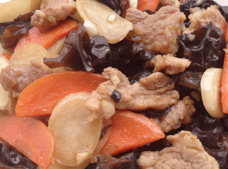 及以下步骤:将肉片加料酒、生粉、少许盐稍腌 将提前泡发好的木耳撕成小朵,胡萝卜、茭白切成片,猪瘦肉切片,姜切片,蒜切末 将肉片加料酒、生粉、少许盐稍腌 将提前泡发好的木耳撕成小朵,胡萝卜、茭白切成片,猪瘦肉切片,姜切片,蒜切末 将肉片加料酒、生粉、少许盐稍腌 将提前泡发好的木耳撕成小朵,胡萝卜、茭白切成片,猪瘦肉切片,姜切片,蒜切末 将肉片加料酒、生粉、少许盐稍腌 热锅,放油烧热,加胡萝卜、茭白翻炒,变色后再炒几下,放盐,装盘备用 锅烧热,再下油,倒入肉片炒散,加适量的醋、酱油、盐、蒜末。加木耳 最后加入胡萝卜茭白片炒至融合。起锅时加少许鸡精
