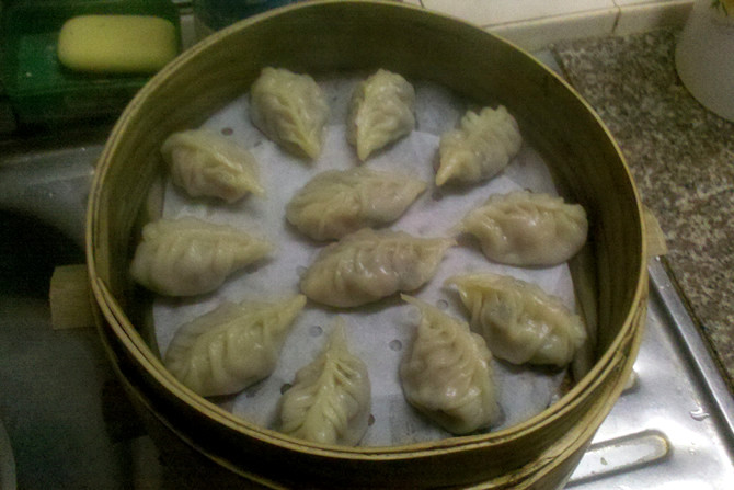 要注意的是,如果是用竹蒸笼,水一定要加够,一定要淹过竹蒸笼脚,否则竹蒸笼会焦掉;当然如果你水不小心加少了,中途加水,那么就要多蒸一会儿,饺子才会熟哦~