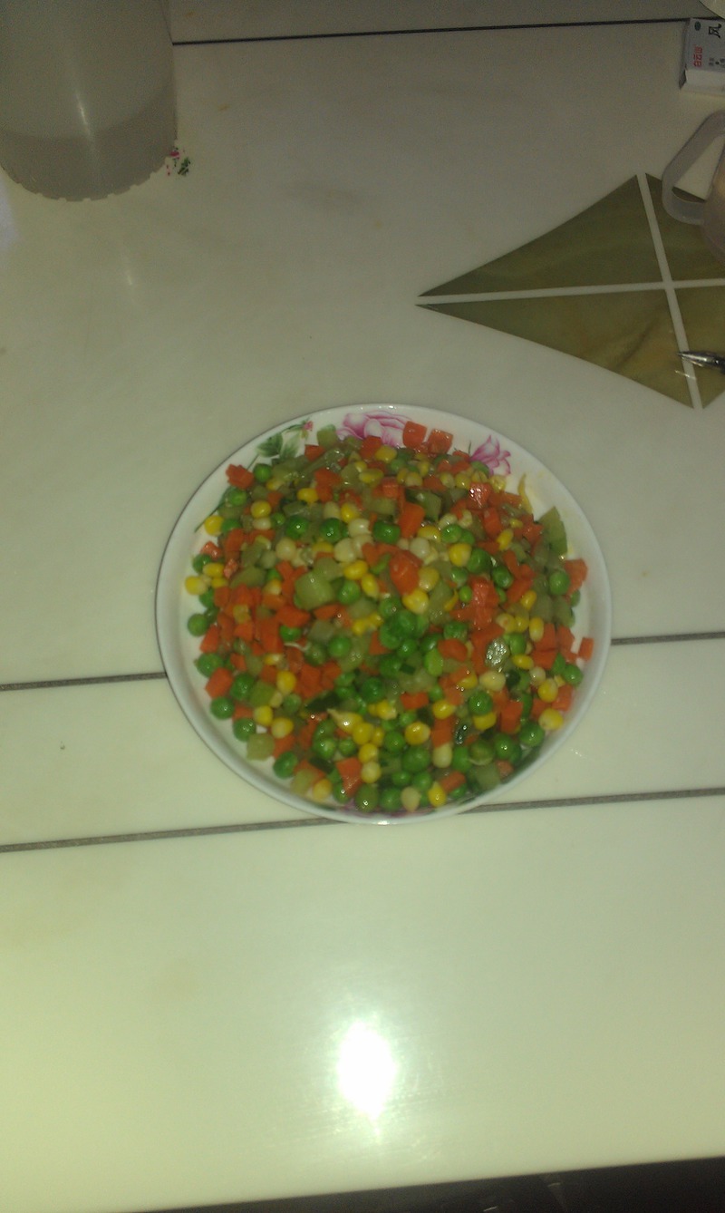 及以下步骤:接着把所有食材倒下锅炒2分钟。 拿个碗装点开水 放点盐跟鸡精 倒下去翻炒一下,就可以出锅了。 先把豌豆放入开水种煮4分钟,因为比较难熟。 先把豌豆放入开水种煮4分钟,因为比较难熟。 接下来把玉米倒进水中煮2分钟,按顺序同样红萝卜也煮2分钟 三样食材放一起 炒锅放点油~ 接着把青瓜放下去炒一分钟,接着把所有食材倒下锅炒2分钟。 接着把所有食材倒下锅炒2分钟。 拿个碗装点开水 放点盐跟鸡精 倒下去翻炒一下,就可以出锅了。