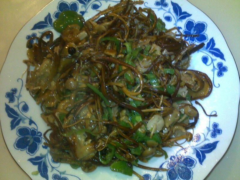 今天去农博会 买了一包金针菇干 半干的 泡了两三个小时就可以了 可以凉拌 可以炒 今天就炒了一下 蛮好吃的