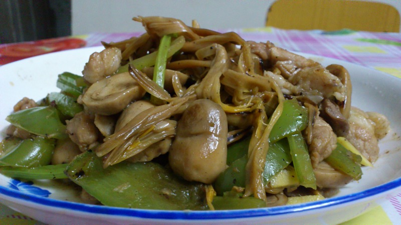 及以下步骤:把肉稍稍翻炒起锅 肉起锅后再加点油烧热 将蒜爆香 加入切段的芹菜 接着再把辣椒倒入锅内 芹菜辣椒先下锅 先把辣椒芹菜炒2、3分钟再倒入草菇 大火翻炒2、3分钟左右 再把黄花菜倒入锅内 揭盖加入姜丝