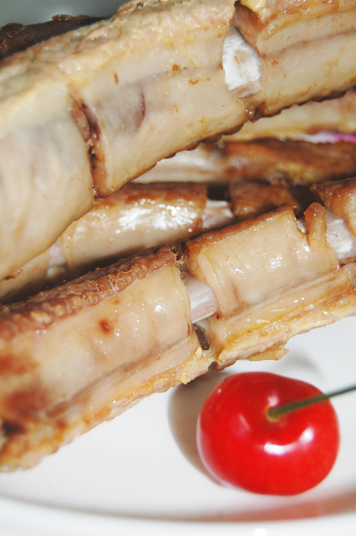 4、烤好的低油版排骨,外部鲜香的酱味,内部是醇厚的原味。