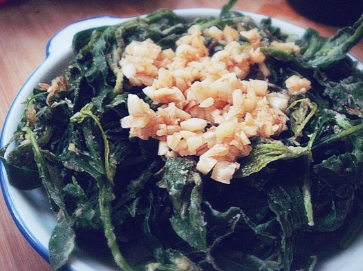 6、蒸熟以后可以直接吃,也可以调个汁沾着吃。我家喜欢捣一些蒜泥,加点醋,最后再点上几滴麻油~相当淳朴的味道!