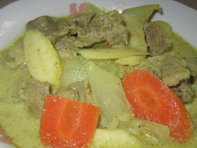 洋葱(适量) / 胡萝卜(适量) / 牛肉(适量) / 茭白(适量) / 绿咖喱酱(适量)