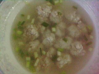 及以下步骤:剁好的菜品放少许淀粉和食盐拌匀 肥肉少许增加口感 剁好的菜品放少许淀粉和食盐拌匀 肥肉少许增加口感 剁好的菜品放少许淀粉和食盐拌匀 肥肉少许增加口感 剁好的菜品放少许淀粉和食盐拌匀 水开后将肉圆下锅放一点食用油,盐,鸡精,也可以自己加点生菜 肉圆变白色再煮一会就可以起锅,关火放下葱花 成品