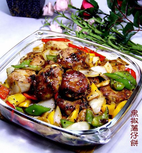 此菜特点;色泽美观、黑椒清香、薯饼软糯、鲜香微辣。