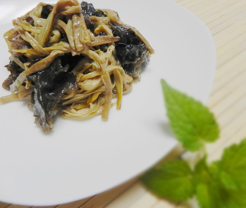 2、将干木耳用温水泡发,去杂质洗净并撕成小块备用