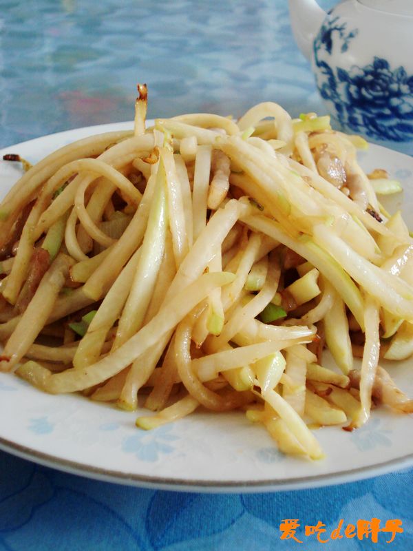 美味青疙瘩炒肉丝制作步骤: