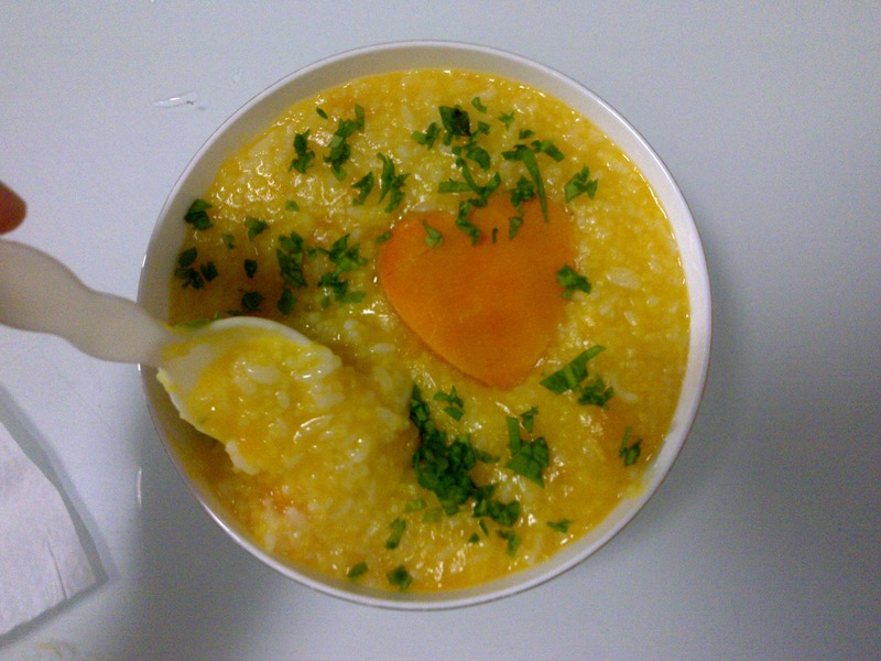 3、煮粥的时候顺便用上面的提,蒸了一个心形的南瓜