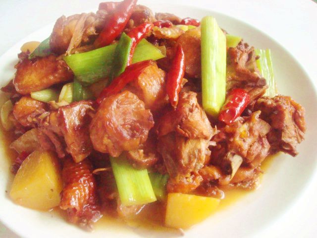 新疆大盘鸡和这做法一样,只是鸭子不过水,再拌上做好的皮带面一起吃 ,菜和主食都有了,一举两得。 干红辣椒可以多一些 可根据自己口味放,可以把干辣椒用冷水泡泡