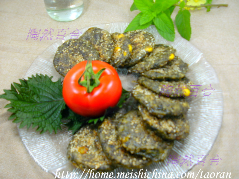 话说这个南瓜叶,本来是食堂用南瓜苗做汤时,因为它比较老而弃而不用的,我却视为珍宝,捡回来,混搭了一番,于时有了这道紫苏南瓜叶芝麻饼出品,虽然卖相不佳,可是却融合了紫苏和南瓜叶的香气,让人内心仿佛在呼吸着田园的气息。