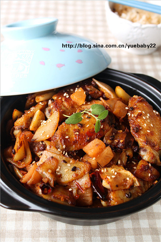 及以下步骤:放入干辣椒,蒜片,姜片,翻炒,再加入郫县豆瓣。 倒入煎好的鸡翅翻炒入味。 倒入炒好的土豆片,加糖。 最后放入酸辣萝卜丁翻炒,出锅撒上白芝麻,花生碎即可。 鸡翅盛出来,锅里焙出的油不用倒,直接放如切好片的土豆片翻炒成金黄色,有点点焦的感觉。 锅里倒一点底油,放入花椒,小火慢慢烹出香味。 放入干辣椒,蒜片,姜片,翻炒,再加入郫县豆瓣。 倒入煎好的鸡翅翻炒入味。 倒入炒好的土豆片,加糖。 最后放入酸辣萝卜丁翻炒,出锅撒上白芝麻,花生碎即可。