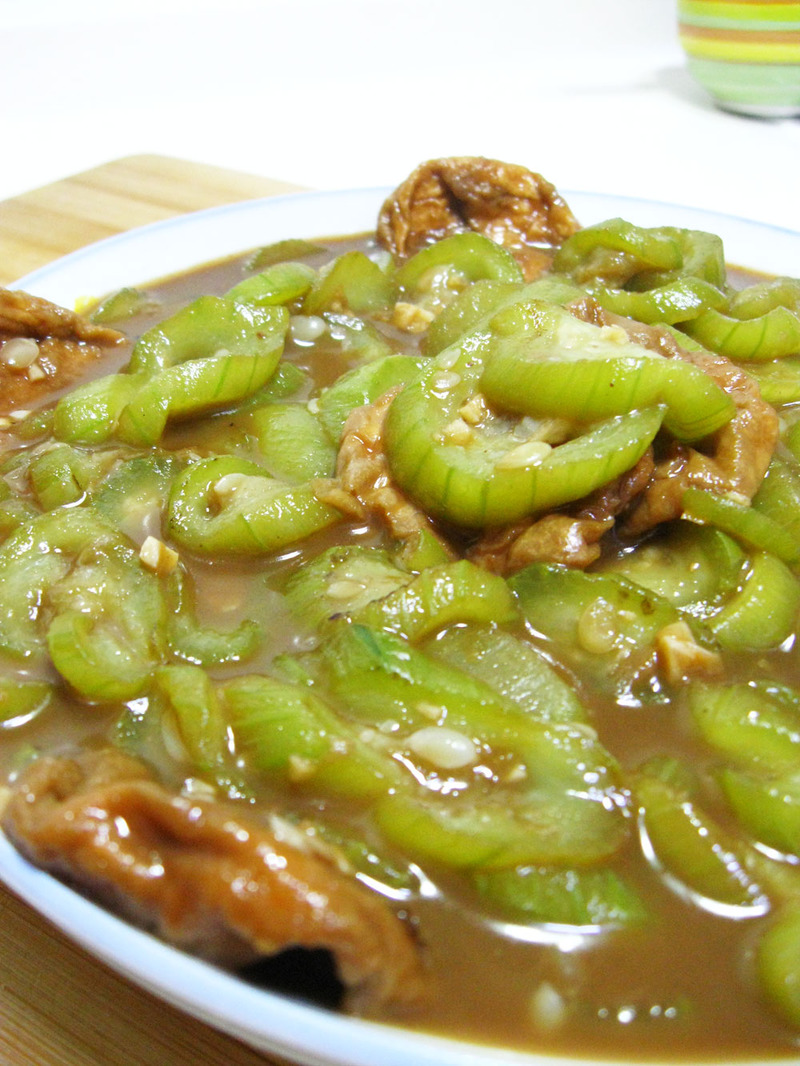 7、这个汤汁多多的丝瓜烩面筋不管是用来拌米饭、面条或者蘸馒头都是很好的选择!