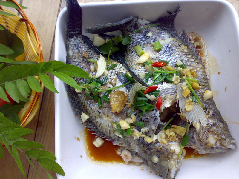 及以下步骤:花斑鱼两条 姜,葱,蒜切碎 花斑鱼两条 姜,葱,蒜切碎 花斑鱼两条 姜,葱,蒜切碎 我爱用的海鲜酱油 另切几片姜在鱼上,淋点油,开火蒸8-10分钟左右,去掉蒸鱼的水 用炒锅烧热油,下姜,蒜爆香淋在鱼上,再淋点海鲜酱油和其他调味料混成的汁,放上香菜 这鱼骨刺不多,给小孩子下饭煲粥都很不错的。有一条鱼还翘着尾巴,保持游泳的姿态呢,哈哈哈。