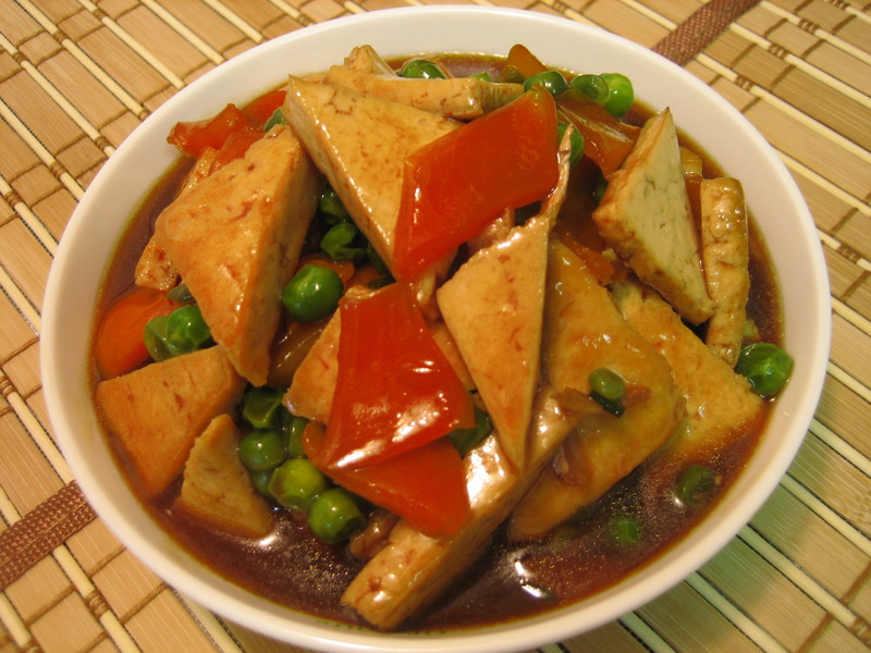 及以下步骤:油温热后,放入豆腐 转中小火,煎至两面金黄,盛出备用 转小火,用锅中余油,煸香葱姜 放入青豆、红柿椒,转中火,翻炒至断生 放入豆腐,翻炒均匀 加入调好的照烧汁,稍稍翻炒入味,既调入水淀粉,勾薄芡 出锅,装盘 放入豆腐,翻炒均匀 加入调好的照烧汁,稍稍翻炒入味,既调入水淀粉,勾薄芡 出锅,装盘