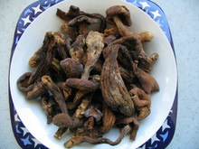 7、血肠切片;酸菜切丝;猪大肠入开水锅焯好,切片;土豆粉、木耳、黄花菜温水泡开。