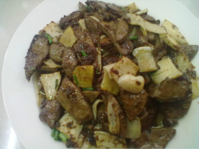 这道菜的特点:猪肝肉嫩,酱香,下饭菜啊~