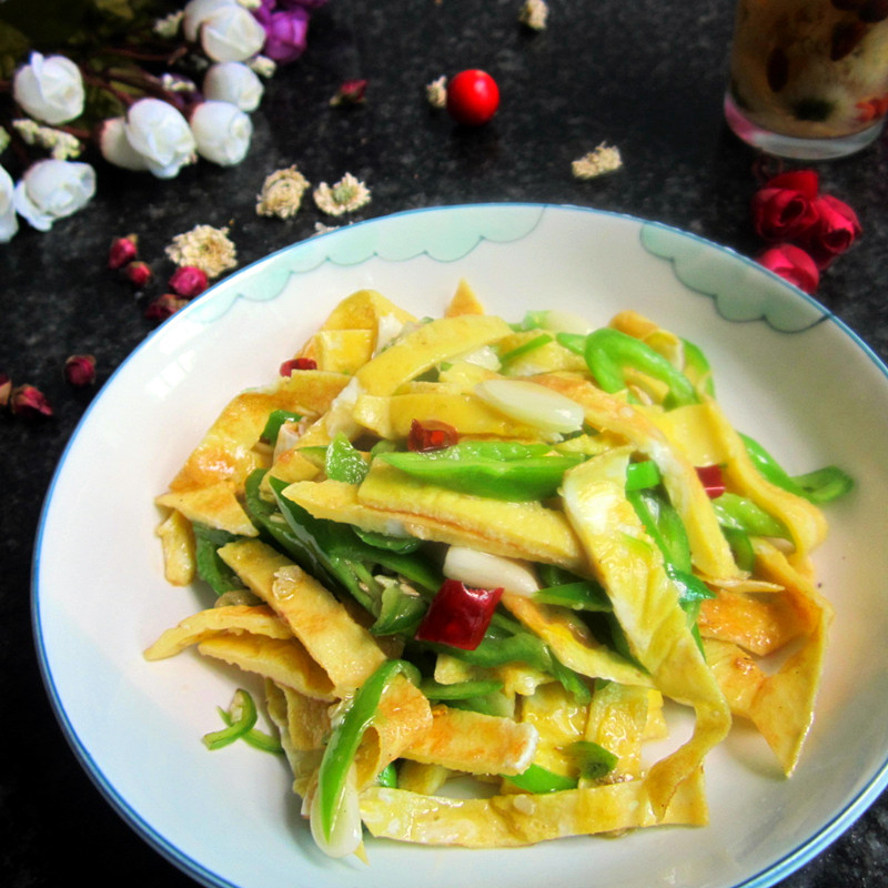 青椒炒蛋皮烹饪方法 图片大全及制作所需厨具设备是网友推荐小编整理所得,是网友的分享推荐,是饮食文化的资源共享,中华美食文化是中华文明的具体践行,美食青椒炒蛋皮烹饪制作就是在传承中华文化。
