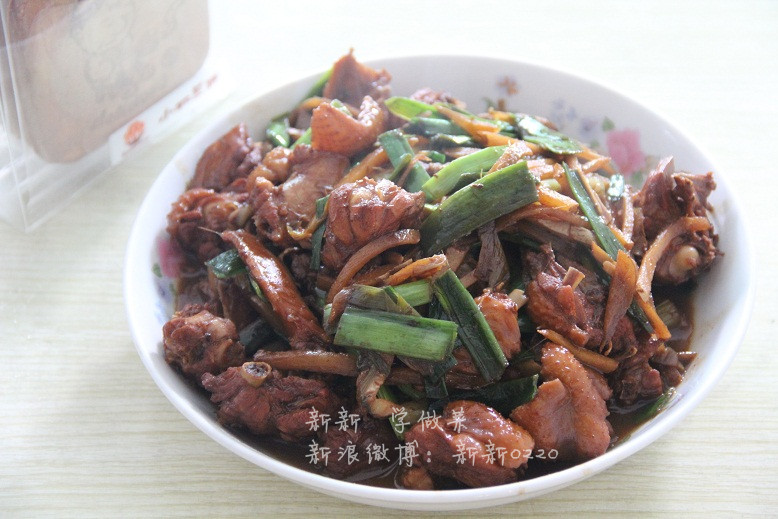 及以下步骤:大概20分钟左右,汤汁烧得差不多了就把大蒜叶放进去 接着翻炒,可以尝一下是否够咸,不够的话再加点盐,然后放点鸡精,就可以出盘了。 出盘的样子,不仅肉好吃,而且肉汤也可以拿来拌饭,很好吃哦 倒入鸡块,翻炒几分钟至变色。 然后倒上料酒,撒上白糖,倒上3,4勺左右的生抽,如果够红了就不要放老抽,不够的话可以稍微倒一点。 然后倒上料酒,撒上白糖,倒上3,4勺左右的生抽,如果够红了就不要放老抽,不够的话可以稍微倒一点。 接着倒上水,盖过鸡肉,用大火烧开以后转中火慢慢烧,这个时候你就可以去忙别的了 大概20分钟左右,汤汁烧得差不多了就把大蒜叶放进去 接着翻炒,可以尝一下是否够咸,不够的话再加点盐,然后放点鸡精,就可以出盘了。 出盘的样子,不仅肉好吃,而且肉汤也可以拿来拌饭,很好吃哦