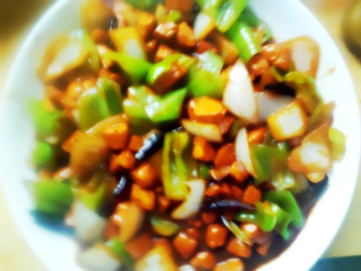 洋葱(半个) / 青椒(4个) / 豆瓣酱(少许) / 干红辣椒(6个) / 蒜瓣(少量)