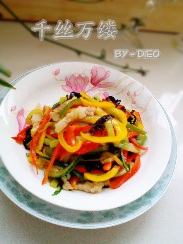 夏天吃饭少,小孩子更不喜欢吃饭了。为了引诱孩子上勾,上一顿做大餐的时候特意买了彩椒做装饰。吃饱喝足后,剩下的配菜可怎么办呢?这么贵且漂亮的东西,浪费真就是犯罪啊,所以当然要随性创意一下下了~这道五彩缤纷的菜,叫千丝万缕,夸张是夸张了点,但这也算名副其实吧?话不多说,还请大家鉴品指正~