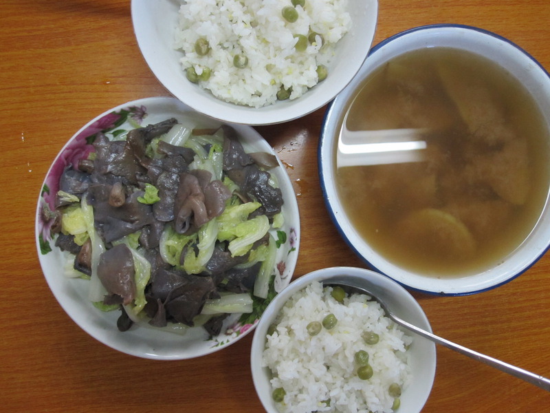 昨天逛市场发现有卖山蘑的 浅紫色的蘑菇很是特别 我还是头一回看见 据说叫花脸蘑 买的人不少 应该不会有毒 索性买了一斤 原本要搭配小绿尖椒炒来着 可惜家里只有大白菜 于是就做了道花脸蘑炒大白菜 顺便用昨晚切了没炒的土豆片又做了碗土豆大酱汤 搭配刚下来的嫩豌豆做的豌豆饭 既清淡又美味 夏天吃起来还蛮不错滴