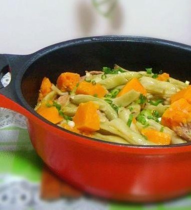 盐(适量) / 葱(适量) / 姜(适量) / 酱油(适量) / 蒜(适量) / 猪肉(适量) / 土豆(适量) / 南瓜(适量)