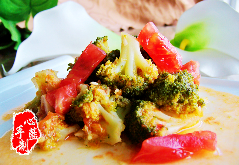 及以下步骤:7.下西兰花及剩余西红柿块,加盐、味素调味,翻炒均匀,让西兰花均匀裹上茄汁,翻炒2分钟,起锅即可 1.西兰花去老根择小朵,在淡盐水中浸泡30分钟,清洗干净待用 2.西红柿去皮,切小块待用 1.西兰花去老根择小朵,在淡盐水中浸泡30分钟,清洗干净待用 2.西红柿去皮,切小块待用 3.坐锅烧水,下少许盐和油,下西兰花朵烫2分钟,捞出过凉开水,沥水待用 4.蒜子切米,坐锅起油,下蒜子爆香 5.下90%西红柿块,翻炒1分钟 6.将西红柿熬煮成浓厚的茄汁 7.下西兰花及剩余西红柿块,加盐、味素调味,翻炒均匀,让西兰花均匀裹上茄汁,翻炒2分钟,起锅即可