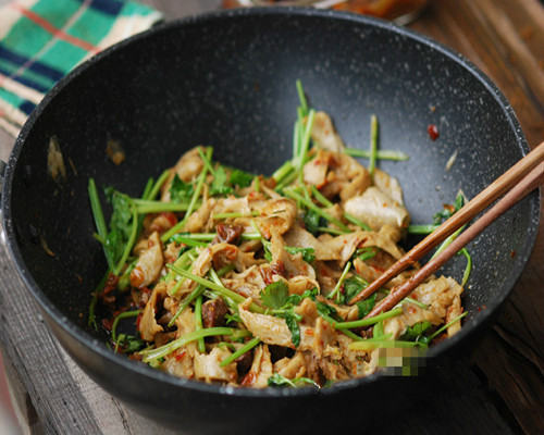 5、关火,出锅前撒上适量香菜叶子拌一下即可。