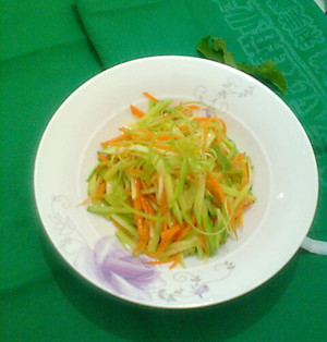 南瓜有老嫩之分,论其营养价值也各有千秋。老南瓜,富含胡萝卜素、钙、钾等,而嫩南瓜除含大量水份外,就是vc的含量极高。对脑力工作者,尤其是每天都要面对电脑的朋友来说是极好的营养佳品。 家里还有一点胡萝卜,正好跟南瓜搭配,补充了胡萝卜素。这道菜的特点,鲜嫩、爽脆;色泽明丽;营养充分