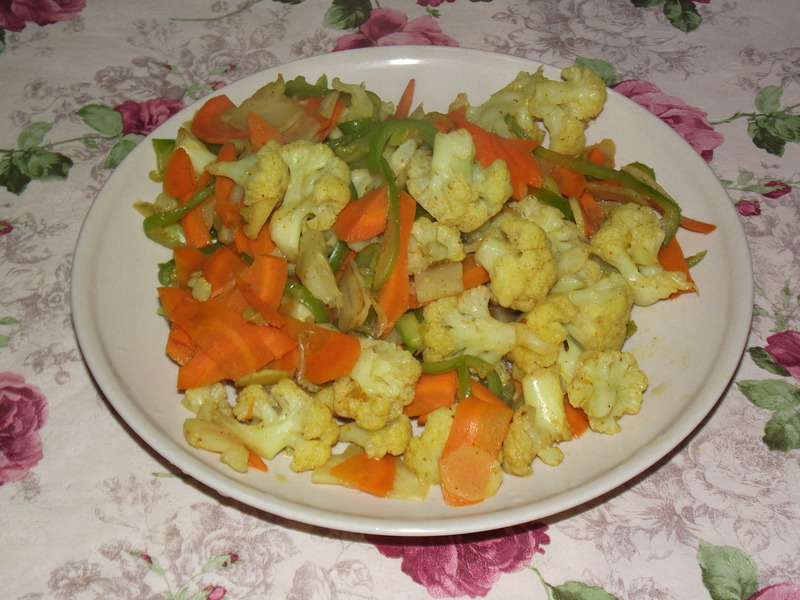 及以下步骤:菜花掰成小块(菜花根部可切成薄片一并使用);胡萝卜切小片;青椒切丝 菜花放入沸水中焯2分钟(如果口感喜欢脆一点可以减少点时间) 菜花掰成小块(菜花根部可切成薄片一并使用);胡萝卜切小片;青椒切丝 菜花放入沸水中焯2分钟(如果口感喜欢脆一点可以减少点时间) 菜花掰成小块(菜花根部可切成薄片一并使用);胡萝卜切小片;青椒切丝 菜花放入沸水中焯2分钟(如果口感喜欢脆一点可以减少点时间) 菜花掰成小块(菜花根部可切成薄片一并使用);胡萝卜切小片;青椒切丝 菜花放入沸水中焯2分钟(如果口感喜欢脆一点可以减少点时间) 炒勺中加入植物油,加入葱花炒香 加入焯过的菜花、胡萝卜片和咖喱粉,加50ml水略煮一下使咖喱味道深入菜花之中,收汤后加入青椒丝略翻炒,出锅前加盐