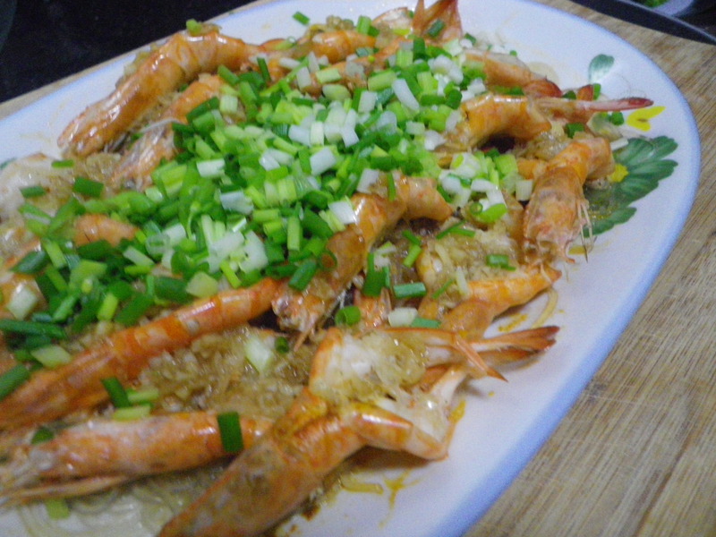 及以下步骤:蒸好之后.拿出来洒上葱花即可! 虾、蒜 粉丝用清水浸泡30分钟。 虾、蒜 粉丝用清水浸泡30分钟。 把蒜切成蒜蓉,加上以上调料拌匀备用。 把虾的须和虾头的尖尖给剪掉,用刀由虾的背部把虾身切开(一分为二)但虾头不用切开. 把粉丝沥干水分,铺好在碟子上面. 把切开好的虾摆好在粉丝上面,把之前备好的蒜蓉均匀的洒在虾的上面.然好把虾放到蒸锅里蒸8分钟. 蒸好之后.拿出来洒上葱花即可!