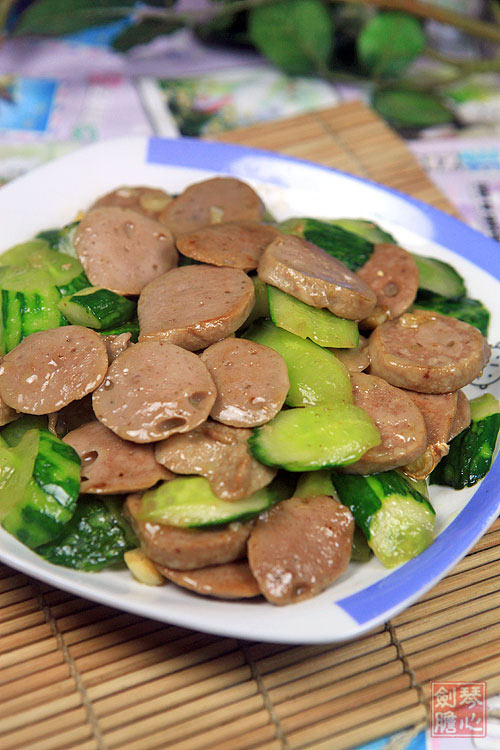 这是一道不用三分钟就能搞定的快手菜,青瓜炒牛肉丸。牛肉丸选择的是潮州的牛肉丸,弹性十足,非常的爽口弹牙,几乎可以拿来当乒乓球打,呵呵。青瓜就是大家说的黄瓜,广东把这种细长的,颜色青绿身上有刺的,叫青瓜。炒青瓜不用很久,因为它很容易熟,时间长了会太软了,口感就没那么好。爽口的青瓜,加上熟的牛肉丸,一道美味的小菜就ok了。
