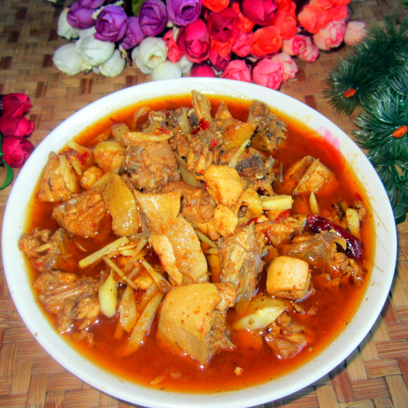 鸡肉的营养价值:转 在肉之中,可以说是蛋白质最高的肉类之一,是属于高蛋白低脂肪的食品。钾硫酸氨基酸的含量颇多,因此可弥补牛及猪肉的不足。同时也由于鸡肉比其他肉类的维生素a含量多,而在量方面虽比蔬菜或肝脏差,但和牛肉和猪肉相比,其维生素a的含量却高出许多。 鸡腿肉肉蛋白质的含量比例较高,种类多,而且消化率高,很容易被人体吸收利用,有增强体力、强壮身体的作用。鸡肉含有对人体生长发育有重要作用的磷脂类,是中国人膳食结构中脂肪和磷脂的重要来源之一。鸡肉对营养不良、畏寒怕冷、乏力疲劳、月经不调、贫血、虚弱等有很好的食疗作用。祖国医学认为,鸡肉有温中益气、补虚填精、健脾胃、活血脉、强筋骨的功效。 担心肥胖的人们,只要把鸡腿的皮剥掉再食有,即可减少热量的摄取。 用料: 子鸡1个,姜丝,红辣子酱,茶籽油,糖,味精。 方法: 1、子鸡去毛,去头,去鸡爪,去翅尖和内脏, 2、冼净切块,再备好红辣子酱和姜丝。 3、锅里倒进茶籽油烧开,倒进切好的子鸡翻炒, 4、再倒里剁好的辣子酱,加盐翻炒片刻。 5、加入清水和一点白醋,白醋去醒的。 6、再把姜丝撒在上面,放点红糖煮10分钟。 7、煮至汤汁浓绸,留小许汁,调入味精出锅装盘即成。