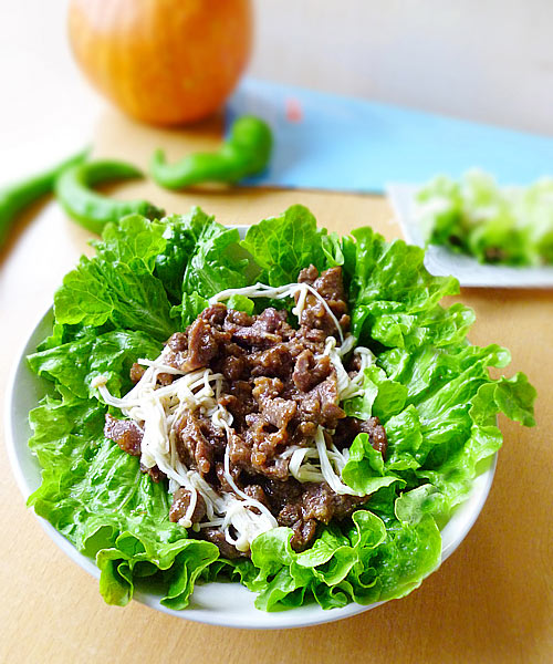 生菜(一颗) / 金针菇(适量) / 烤肉酱(适量)