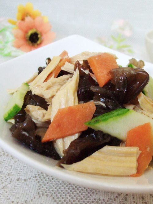 胡萝卜(50克) / 黄瓜(100克) / 木耳(50克) / 腐竹(100克)
