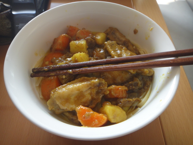 及以下步骤:先倒入适量油热锅,再将切成块状的用料一起下锅翻炒,加水至刚好没过食材,煮沸后捞起浮沫,再调至中火煮10分钟 准备好食材 土豆要削皮 先倒入适量油热锅,再将切成块状的用料一起下锅翻炒,加水至刚好没过食材,煮沸后捞起浮沫,再调至中火煮10分钟 准备好食材 土豆要削皮 先倒入适量油热锅,再将切成块状的用料一起下锅翻炒,加水至刚好没过食材,煮沸后捞起浮沫,再调至中火煮10分钟 准备好食材 土豆要削皮 先倒入适量油热锅,再将切成块状的用料一起下锅翻炒,加水至刚好没过食材,煮沸后捞起浮沫,再调至中火煮10分钟 关上火,取3块咖喱块放入锅中搅拌均匀,咖喱块完全溶解后再开火,用小火炖煮5分钟左右至咖喱呈抽糊状 在炒锅中做咖喱至第三步时,同时在煮锅里放入适量水,煮沸后加入适量意大利面,煮8分钟左右 将煮好的咖喱浇在意大利粉上就完成啦~