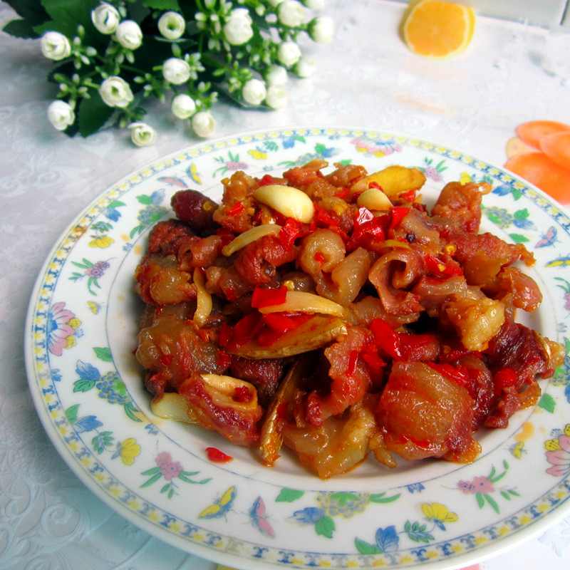 牛肉已是人们的第二大肉类食品,因其蛋白质含量高,而脂肪含量低,所以味道鲜美,深受人们喜爱,享有肉中骄子的美称。 营养价值 1、牛肉有补中益气,滋养脾胃,强健筋骨,化痰息风,止渴止涎之功效,适宜于中气下隐、气短体虚、筋骨酸软、贫血久病及面黄目眩之人食用; 2、水牛肉能安胎补神,黄牛肉能安中益气、健脾养胃、强筋壮骨。 3、.牛肉中的肌氨酸含量比任何其它食品都高,这使它对增长肌肉、增强力量特别有效。 4、牛肉含有足够的维生素b6, 可帮你增强免疫力,促进蛋白质的新陈代谢和合成,从而有助于紧张训练后身体的恢复。 5、牛肉的肉毒碱含量很高。肉毒碱主要用于支持脂肪的新陈代谢,产生支链氨基酸,是对健美运动员增长肌肉起重要作用的一种氨基酸。 6、牛肉中脂肪含量很低,但却富含结合亚油酸,这些潜在的抗氧化剂可以有效对抗举重等运动中造成的组织损伤。 7、牛肉含锌、镁:锌是另外一种有助于蛋白质的合成、促进肌肉生长的抗氧化剂。 8、牛肉含维生素b12对细胞的产生至关重要,而红细胞的作用是将氧带给肌肉组织。维生素b12能促进支链氨基酸的新陈代谢,从而供给身体进行高强度训练所需的能量。 食材: 牛腩1斤,调和油 调料; 盐,孜然粉,花椒粉,辣子酱,姜片,蒜片,酱油,味精,糖,八角,桂皮。 先将牛腩焖炖待用 1、牛腩先用清水冼净,放进开水里氽水, 2、氽水后捞出用清水冲冼多遍,再改刀。 3、将过好水的牛腩放进电压锅 里, 4、放进八角,桂皮,适量的清水高压20分钟冷却后捞出待用。 方法: 1、锅里放油烧热,放进姜片和蒜片炒香, 2、再把处理过的牛腩放进锅里翻炒, 3、加入备好的辣子酱和盐, 4、翻炒均匀后调入酱油,糖,花椒粉,孜然粉, 5、翻炒片刻,调入味精, 6、出锅即成。