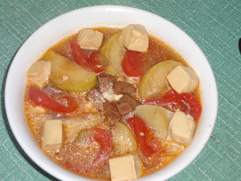 及以下步骤:切好的牛肉待用 切块的苹果待用 切块的西红柿待用 牛肉出水,汤留着 待用 将牛肉,番茄,苹果,汤,酱油,姜末,绍酒,葱段,盐旺火烧沸,下入番茄,转小火炖制1小时,待牛肉熟烂是出锅即可。 切块的西红柿待用 牛肉出水,汤留着 待用 将牛肉,番茄,苹果,汤,酱油,姜末,绍酒,葱段,盐旺火烧沸,下入番茄,转小火炖制1小时,待牛肉熟烂是出锅即可。