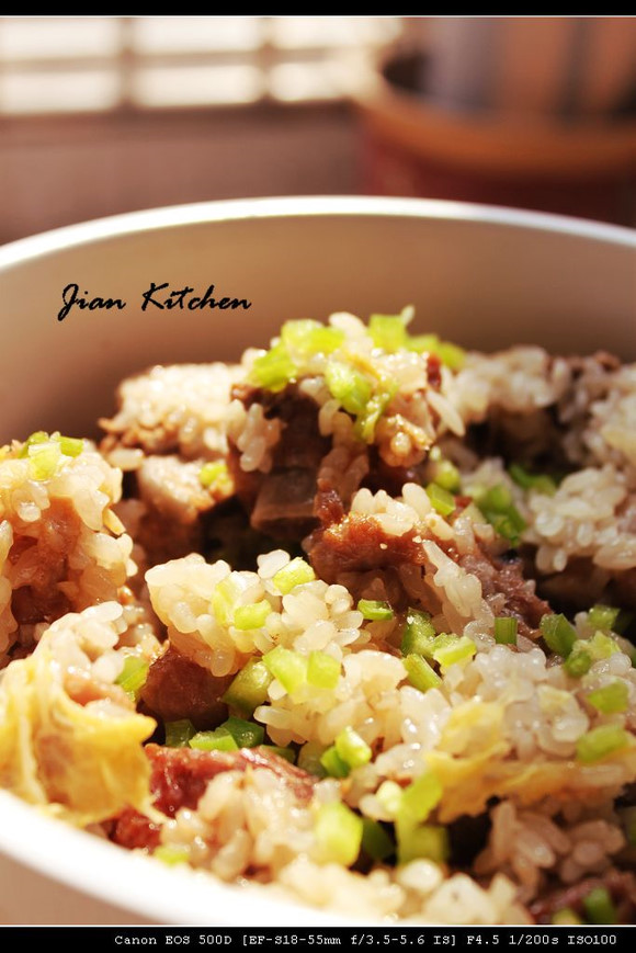 及以下步骤:排骨剁成约4-5cm长,用清水浸泡1小时,冲去血水,沥干;调入除橄榄油之外的上述调料,拌匀。冷藏腌制2小时以上。 糯米洗净,浸泡一夜。 排骨剁成约4-5cm长,用清水浸泡1小时,冲去血水,沥干;调入除橄榄油之外的上述调料,拌匀。冷藏腌制2小时以上。 糯米洗净,浸泡一夜。 排骨剁成约4-5cm长,用清水浸泡1小时,冲去血水,沥干;调入除橄榄油之外的上述调料,拌匀。冷藏腌制2小时以上。 糯米洗净,浸泡一夜。 排骨剁成约4-5cm长,用清水浸泡1小时,冲去血水,沥干;调入除橄榄油之外的上述调料,拌匀。冷藏腌制2小时以上。 将腌好的排骨加到糯米里,拌匀,加少许橄榄油,静置4-5分钟。之后在蒸笼里铺一层白菜叶,一层糯米,把粘好糯米的排骨铺好。(其实这道菜正宗的做法应该是用荷叶包的,但是手头没有荷叶,我就用白菜叶代替了,事实证明,除了少却了一点荷叶的清香,菜肴本身完全不受影响,也很美味。) 上层再铺一层白菜叶。入压力锅蒸35--40分钟。 开锅轻轻掀开白菜叶,撒上青椒末香菜末即成。掀开盖子的一刹那香气扑鼻,接着看到白白的糯米和软软的小排乖乖的趴在那里,你会觉得很沉醉。