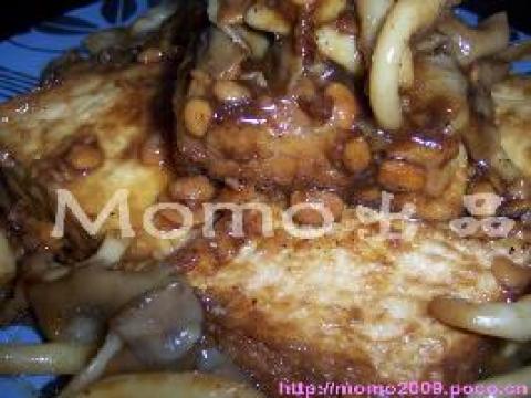 豆腐5砖,秀珍菇250克,姜片适量,黄豆酱适量,冰糖适量