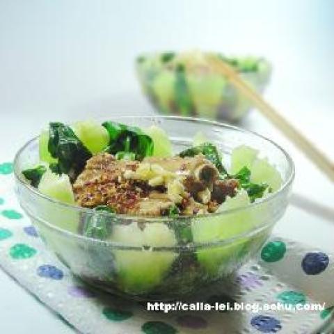 3.小白菜焯水,铺在碗底。